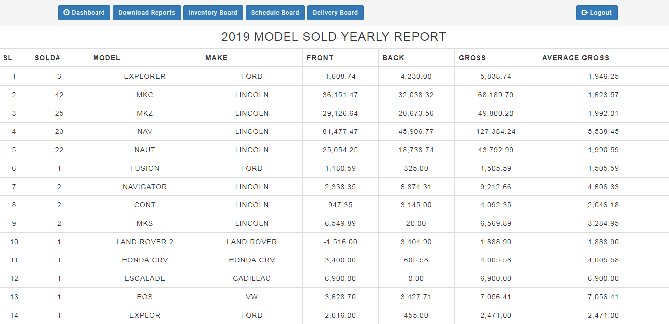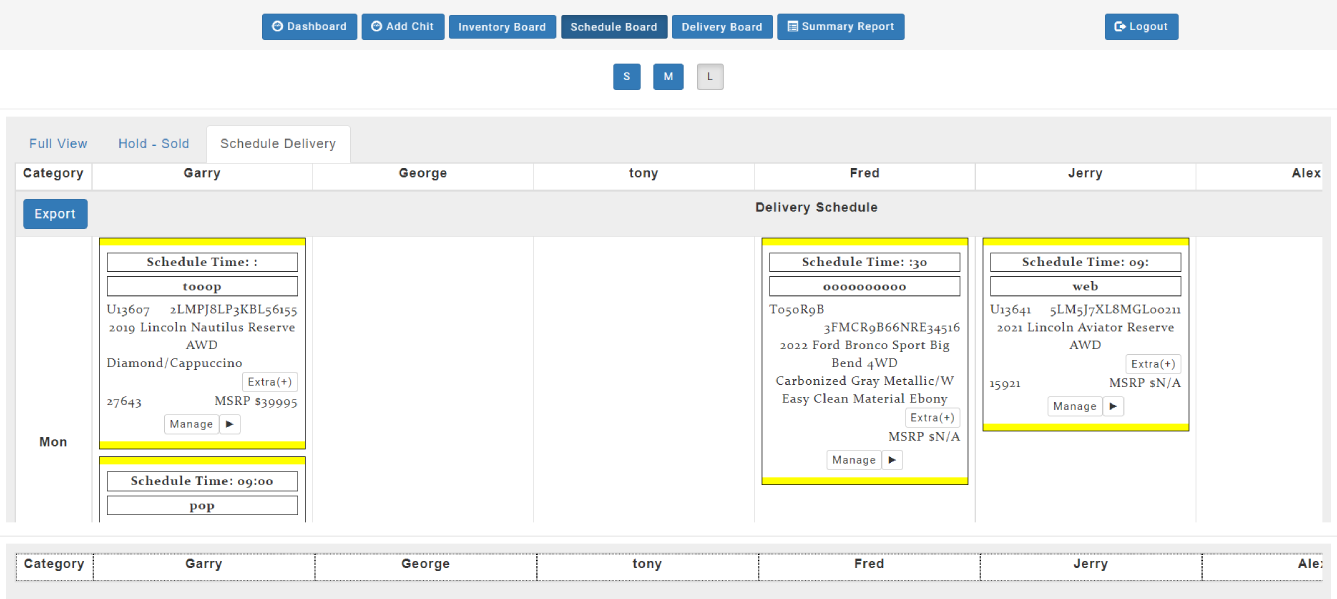 Keep up date and track sold vehicles. From Set up to delivery schedule time