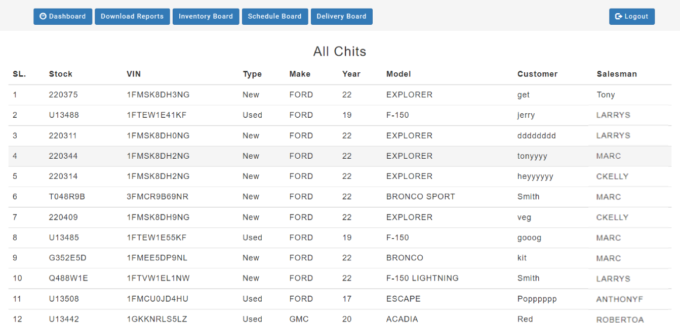 Each Chit represents a vehicle on your lot. Unlimited inventory.